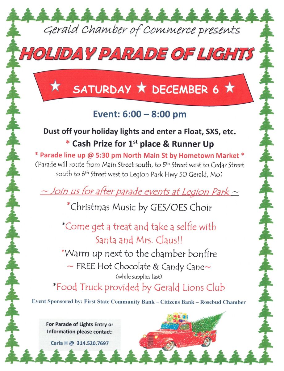 To have your event advertised, please call or come into Gerald City Hall with an event flyer. Events must be open to the public and held within the City of Gerald.